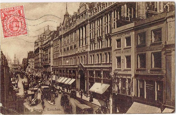 イギリス1900〜1910年頃。劇場街として有名なロンドン中心部のストランド地区です。