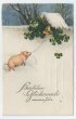 オーストリア1929年消印のアンティークポストカードです。(ブタ 四つ葉クローバー)