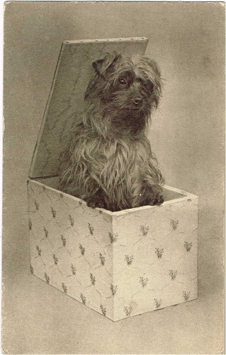 Postcard 箱の中の犬 ヨークシャーテリア? 未使用 [n3861]