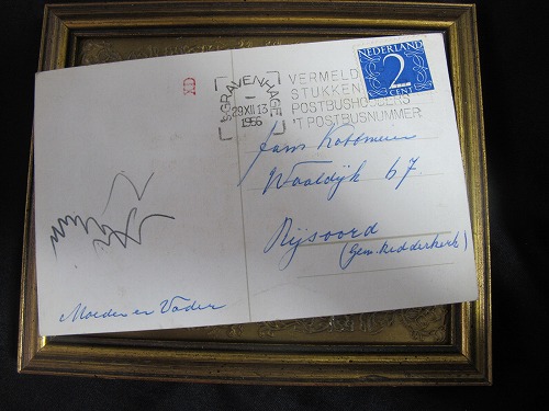 オランダ切手1956年消印のアンティークポストカードです。ブタ