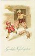 Postcard 子どもと飛び出す子豚たち 1920年代頃 [g4979]