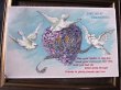 Postcard ハート型のスミレのお花と白鳩 1914年