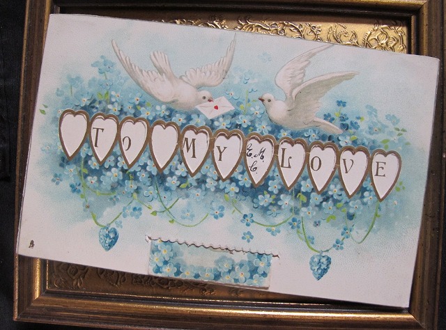 Postcard 忘れな草のお花と白鳩 仕掛けカード [f2762]