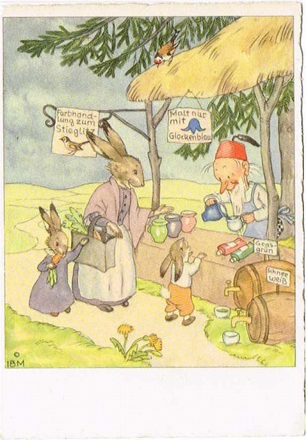 Postcard 妖精さんのお店でお買い物をするウサギさんの親子 [g5244]