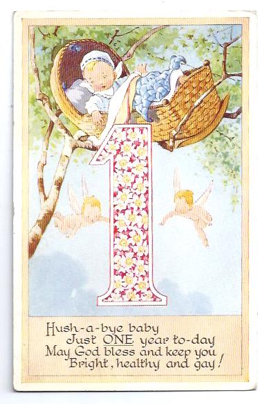 Postcard 1才のお誕生日カード 天使と赤ちゃん Dorothy Watkins [g5454]