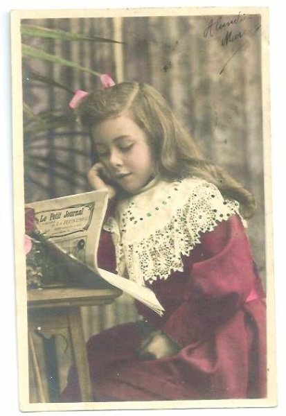 Postcard 新聞を読む女の子 レース 1905年 [c4549]