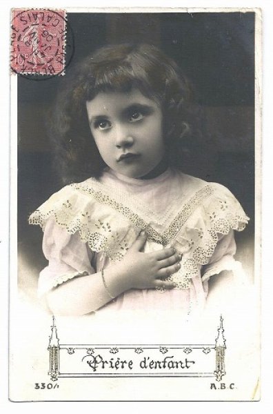Postcard 祈る女の子 十字架 フランス1906年 [c4643]