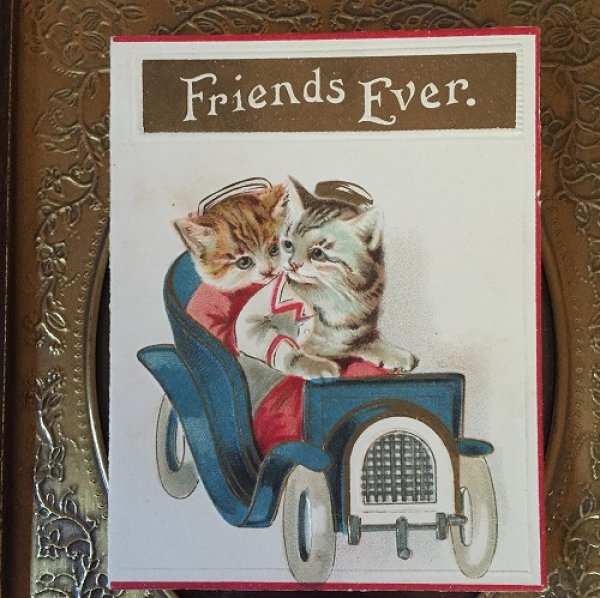 Mini Greeting card 自動車に乗る猫たち Friends Ever