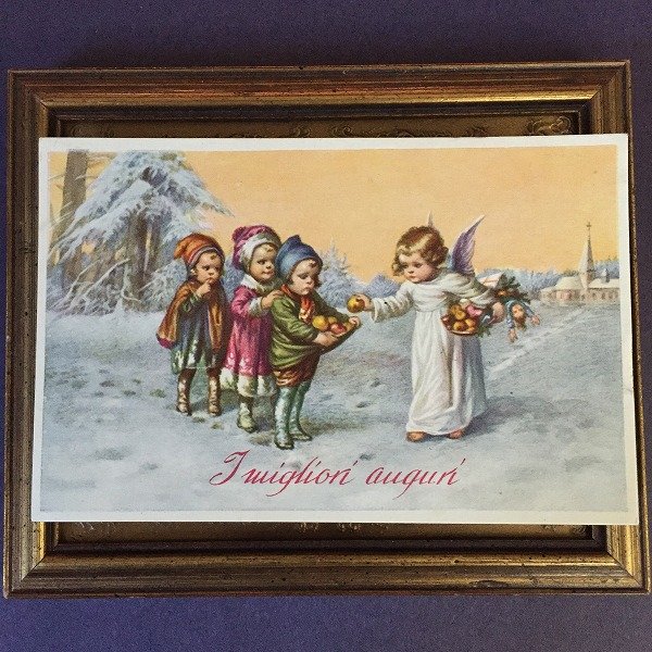 Postcard クリスマス リンゴを与える天使 Wally Fialkowska ? 未使用