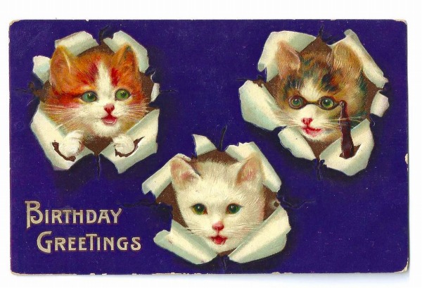 Postcard 3匹の猫 眼鏡 [n4267]