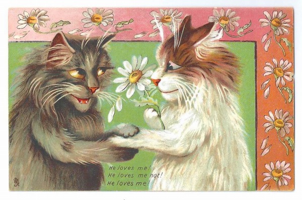 Postcard 恋する猫 花占い Maurice Boulanger 1909年