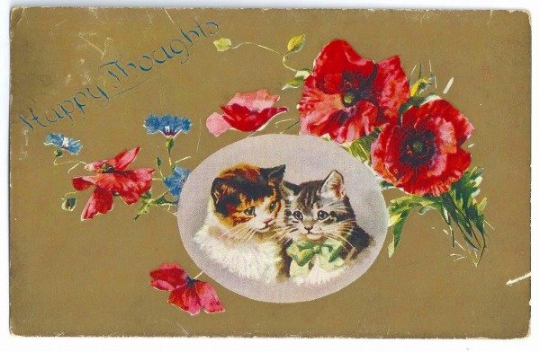 Postcard 2匹の猫とポピーのお花 Helena Maguire