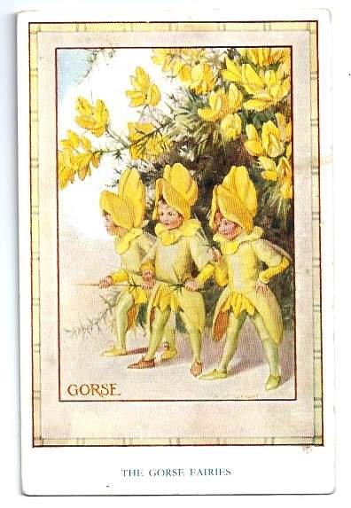チクチクしたハリエニシダの棘で短剣を作って遊んでいる男の子の妖精たちです。