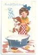 Postcard 犬を洗う女の子 バスタイム [n4405]