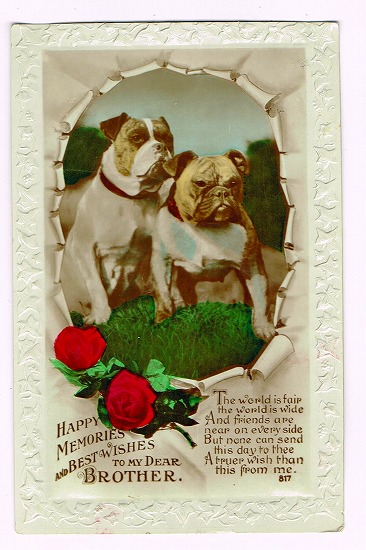 Postcard イングリッシュ・ブルドッグ犬 薔薇のお花 [n4475]