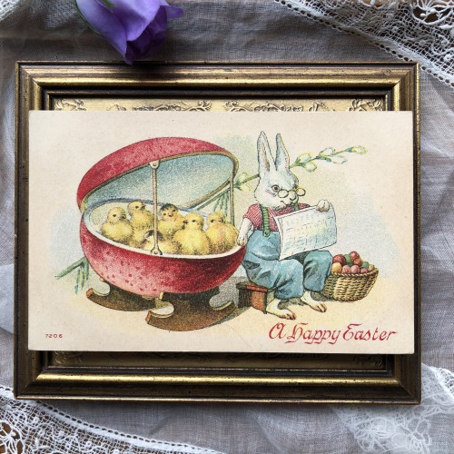 Postcard Easter ウサギのベビーシッターさん 卵のゆりかご