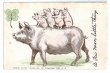Postcard 豚の家族 背中に乗る子豚 1905年