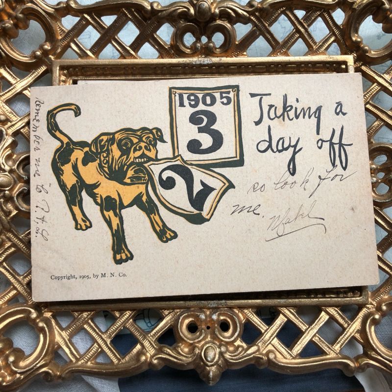 ▼SALE 500▼ Postcard 新年祝い 新年を告げるブルドッグ犬 1905年