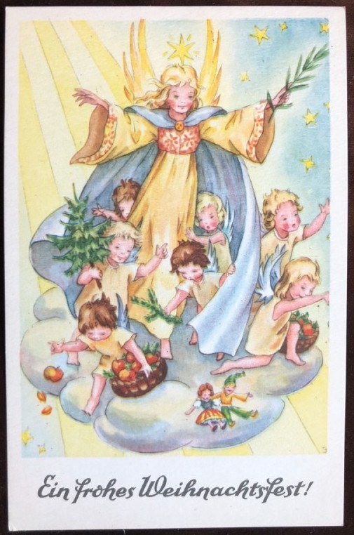 Postcard クリスマス 雲の上の天使たち 未使用