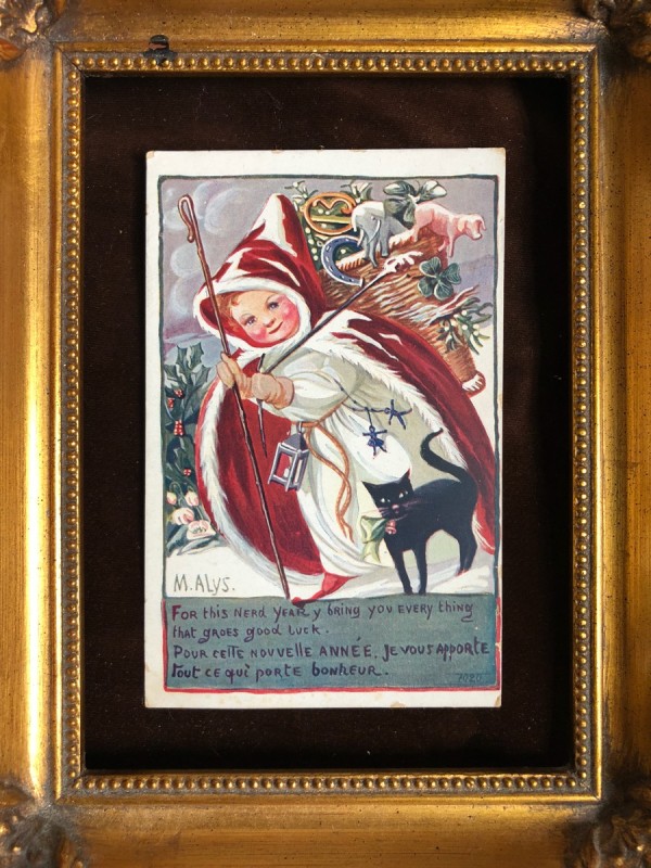 Postcard クリスマスプレゼントを運ぶ魔女の女の子 1918年 フランス