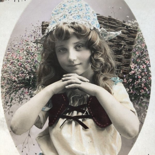 Postcard お花籠と女の子 フランス1910年