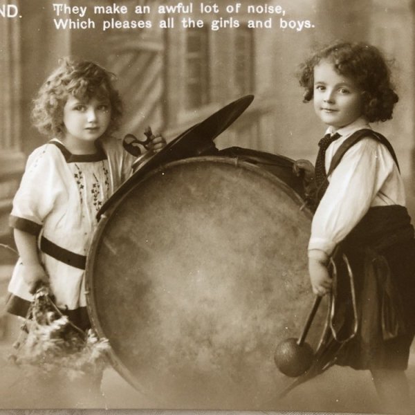 Postcard 大太鼓とシンバルンと子どもたち イギリス1913年 楽器
