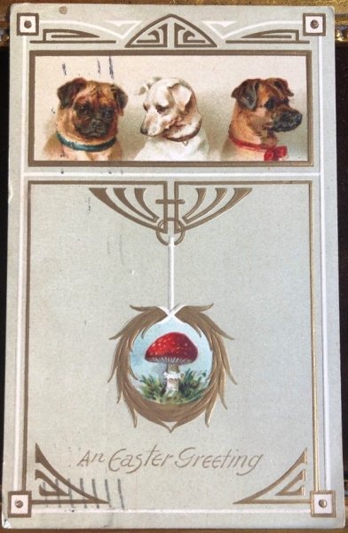 Postcard イースター 3匹の犬とキノコ Helena Maguire