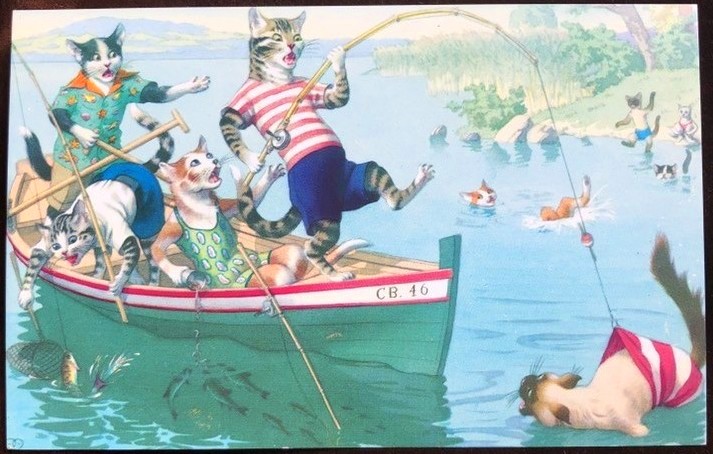 Postcard 猫を釣り上げてしまった猫 Mainzer cat