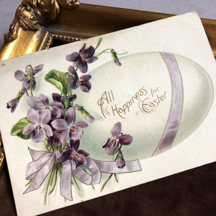 Postcard イースター スミレのお花と卵 Ellen Clapsaddle ?