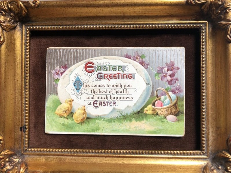 Postcard イースター 大きな卵とスミレのお花とヒヨコさん イギリス1912年