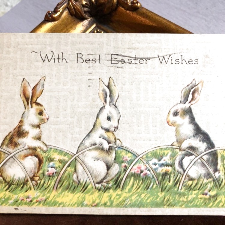 Postcard イースター 3匹のウサギさん アメリカ1919年
