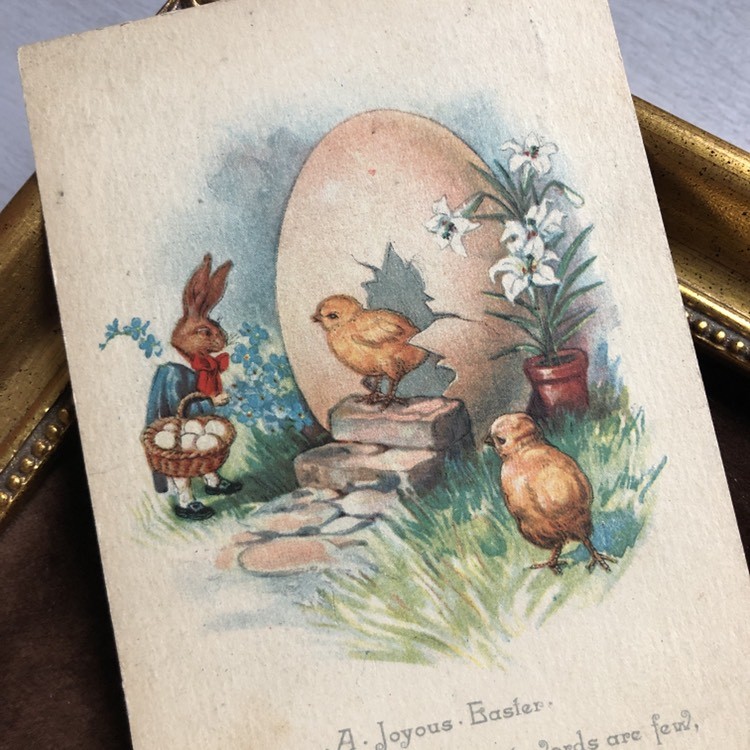 ▼SALE 500▼ Postcard イースター 卵を運ぶウサギさんとヒヨコさん