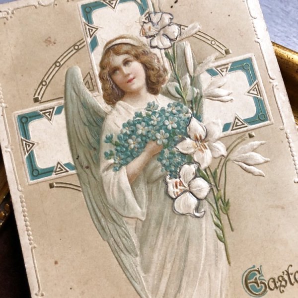 Postcard イースター 白百合のお花と天使 1913年 [g7486]