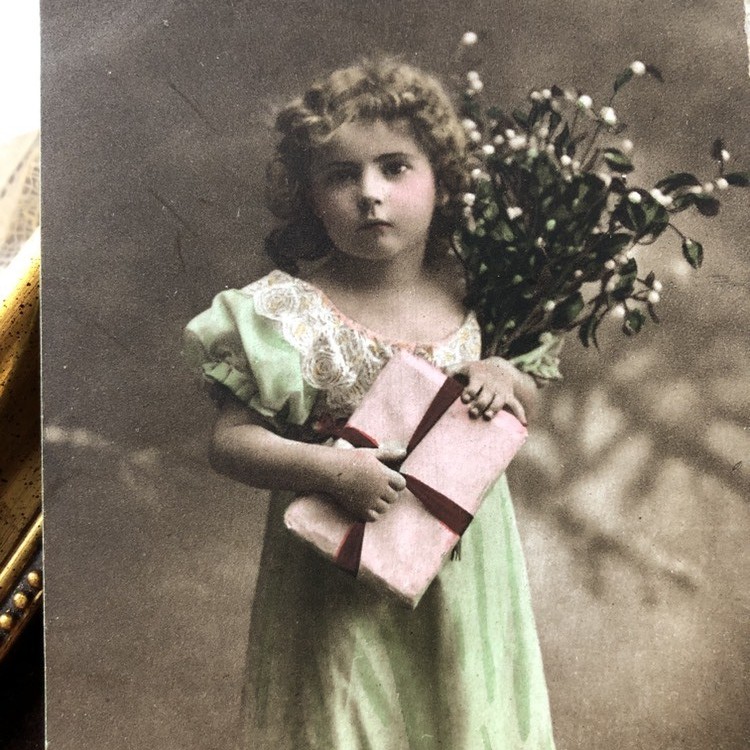 Postcard BONNE ANNEE クリスマス ヤドリギと女の子 ベルギー1913年
