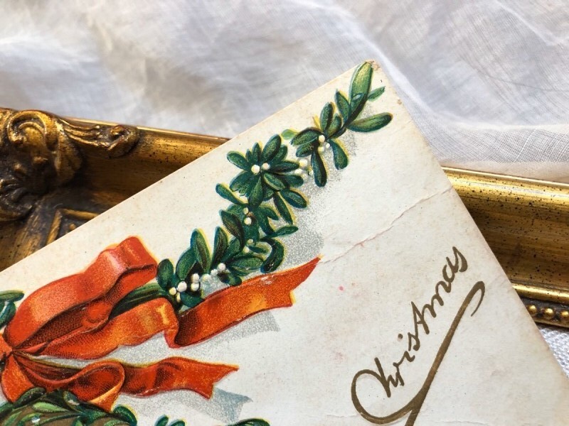 ▼SALE 500▼ Postcard クリスマス ヤドリギとベルと赤いリボン エレン・クラップサドル