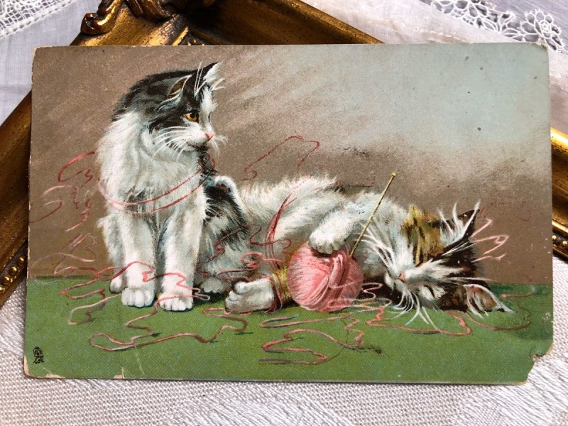▼SALE500▼ Postcard 毛糸と猫 アメリカ1910年