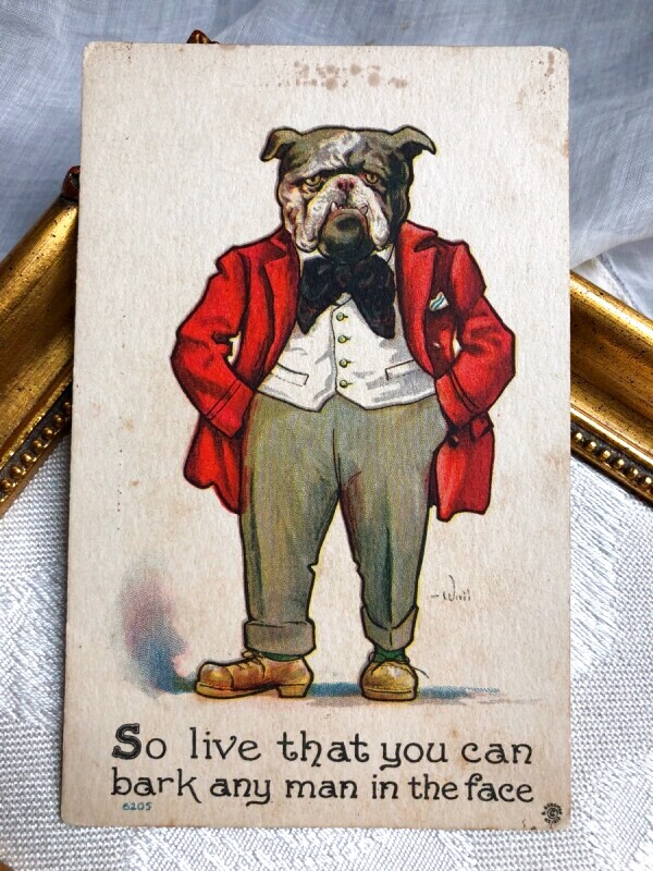 Postcard 赤いジャケットのブルドッグ犬 (未使用)