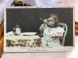 Postcard スープと目覚まし時計と女の子 朝食 フランス1908年