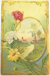 Postcard アンティークポストカード カーネーションとデイジーのお花 水辺の風景 アメリカ1910年