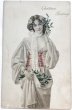 Postcard アンティークポストカード ヤドリギと女性 ウィーン趣味風 [g8870]