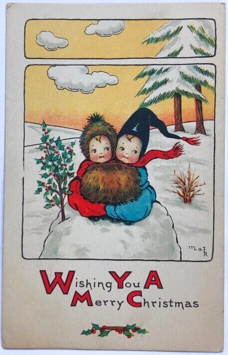 Postcard アンティークポストカード クリスマス 雪の上の子どもたち アメリカ1918年