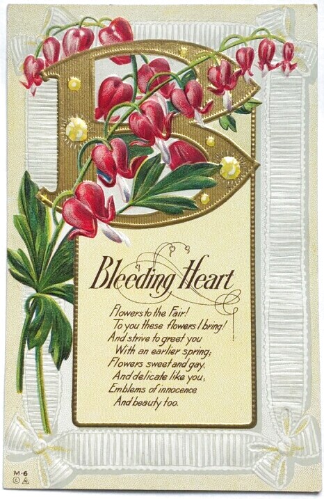 Postcard アンティークポストカード アルファベットB Bleeding heart(ブリーディング ハート)ケマンソウ 宝石 ジュエリー 花言葉