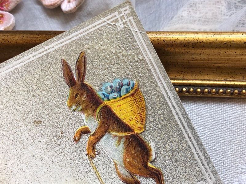 ▼SALE 500▼Postcard アンティークポストカード イースター オランダ服の女の子と卵を背負ったウサギさん [g9316]