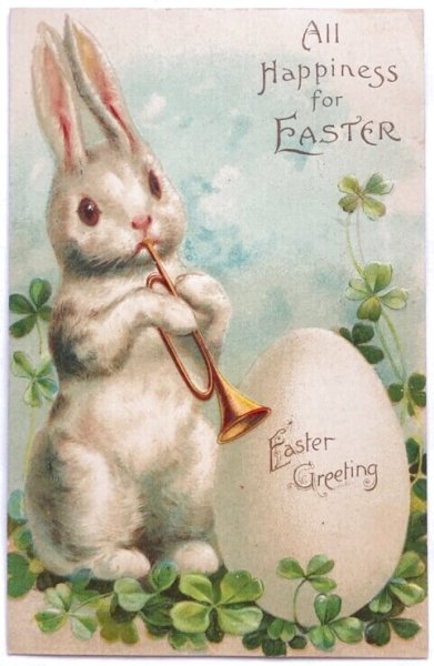 Postcard アンティークポストカード イースター トランペットを吹くうさぎさん ウサギ Ellen Clapsaddle アメリカ1908年