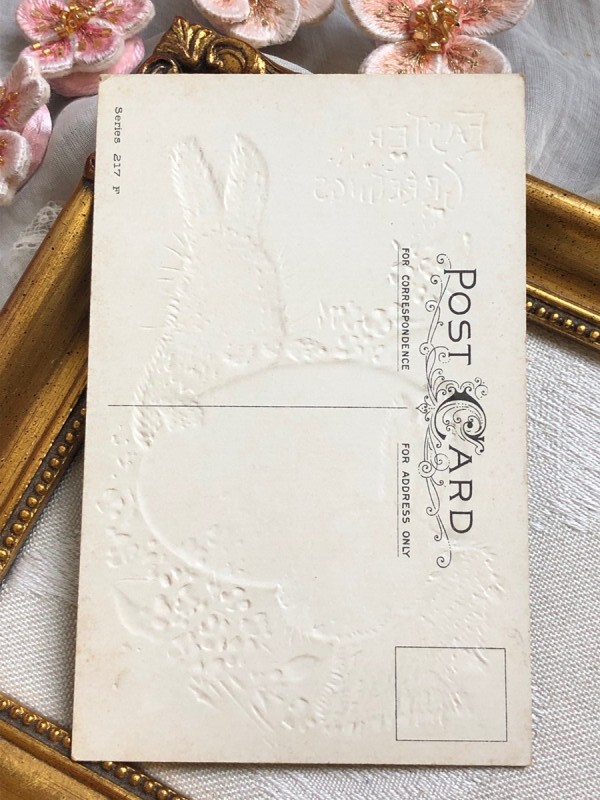 Postcard アンティークポストカード イースター うさぎさんと青色の卵 (未使用)