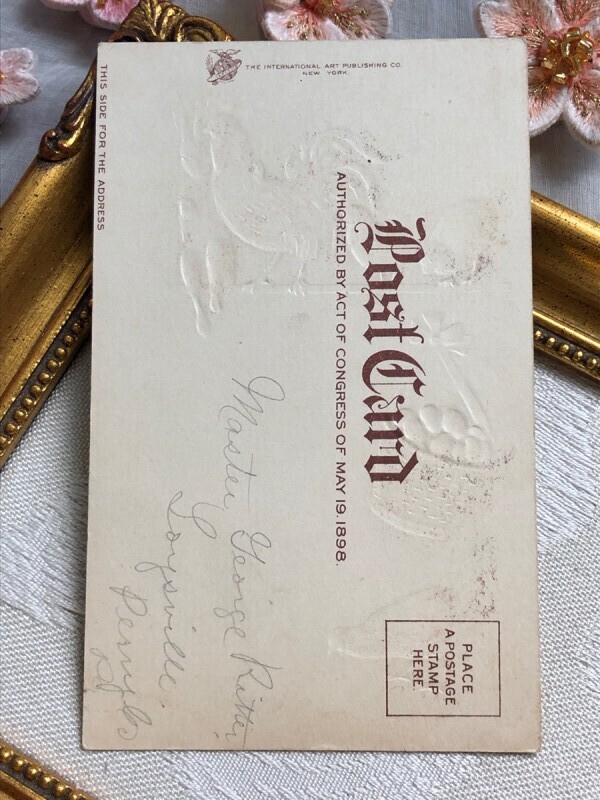 Postcard アンティークポストカード イースター ニワトリの家族とウサギさん うさぎ