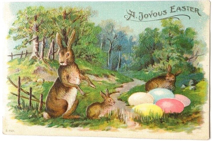 Postcard アンティークポストカード イースター ウサギさんと卵 うさぎ (未使用) [g9421]