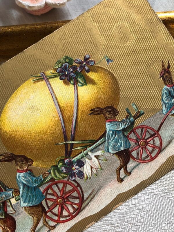 Postcard アンティークポストカード イースター 卵を運ぶウサギさん うさぎ (未使用)