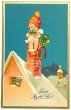 Postcard アンティークポストカード 新年祝い 煙突の上の小さな天使 (未使用) [g9639]