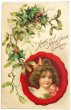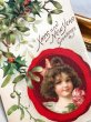 Postcard アンティークポストカード クリスマス 女の子 ヤドリギ ホーリー F.Brundage [g9664]